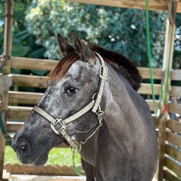 Artie is a gentle Appaloosa pony with an old-soul personality who always puts his riders first. Known as the “grandpa of the herd,” he offers patience and kindness, making him a trusted partner for children. On the lunge line, he helps young riders gain confidence and balance, while off the lunge he provides steady, safe rides. At Johnson’s Folly Horse Farm riding school, Artie is ideal for kids’ beginner pony lessons and those memorable first canter lessons.